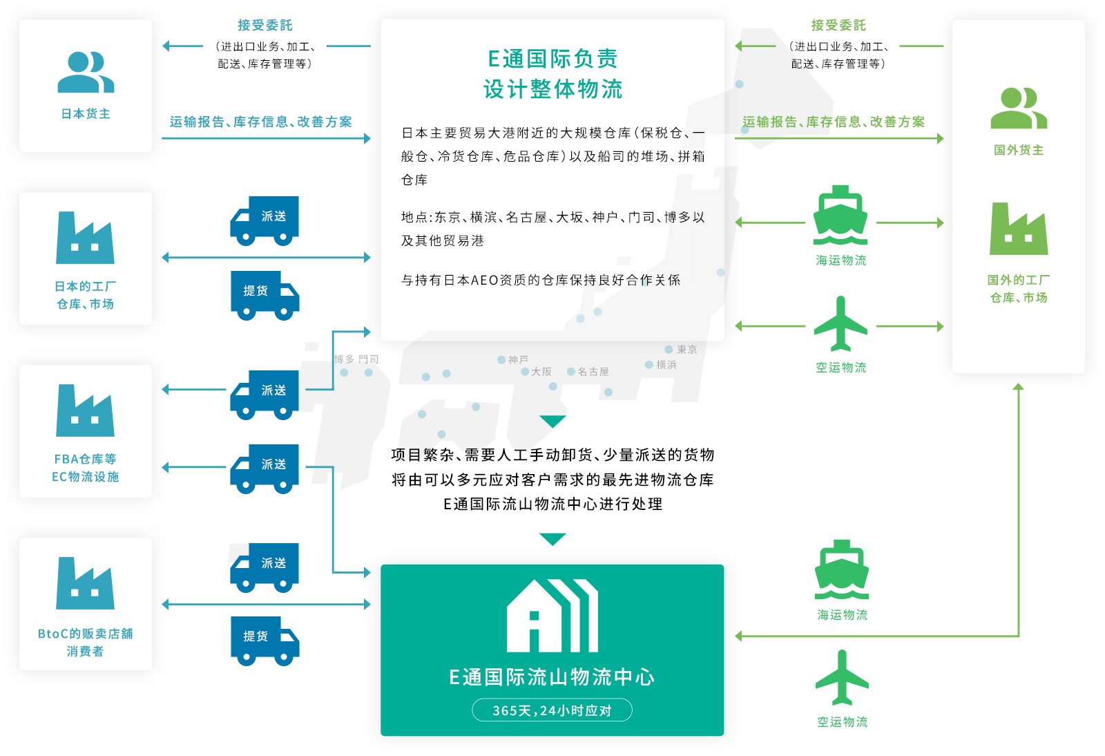 我们也负责在日本的进口与派送业务,进行一站式服务。