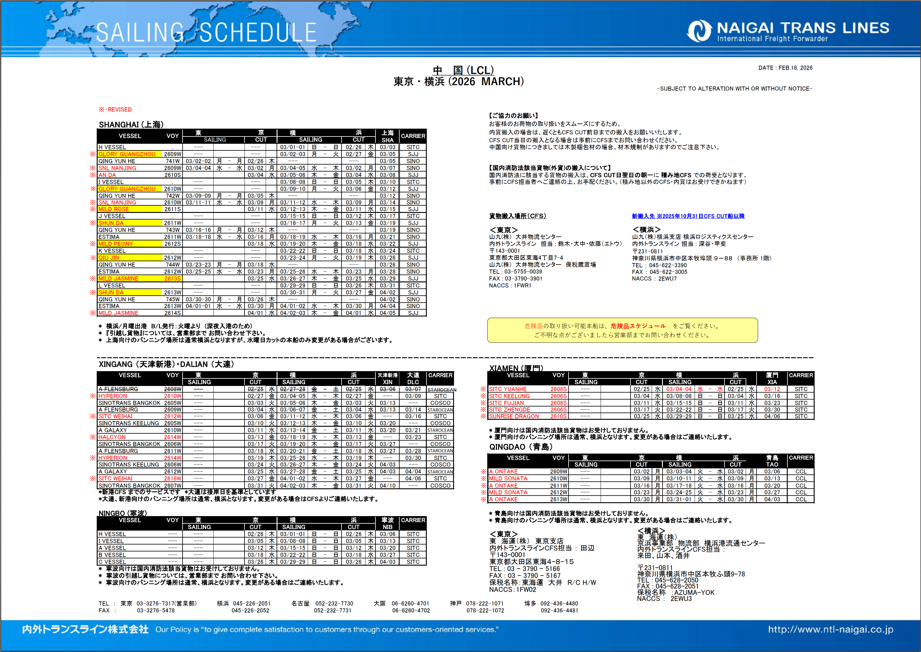 日本発輸出貨物混載サービスをリードする内外トランスラインを利用して弊社の独自の海外ネットワークとJOINTしたDoor to Doorサービスを提供致します。