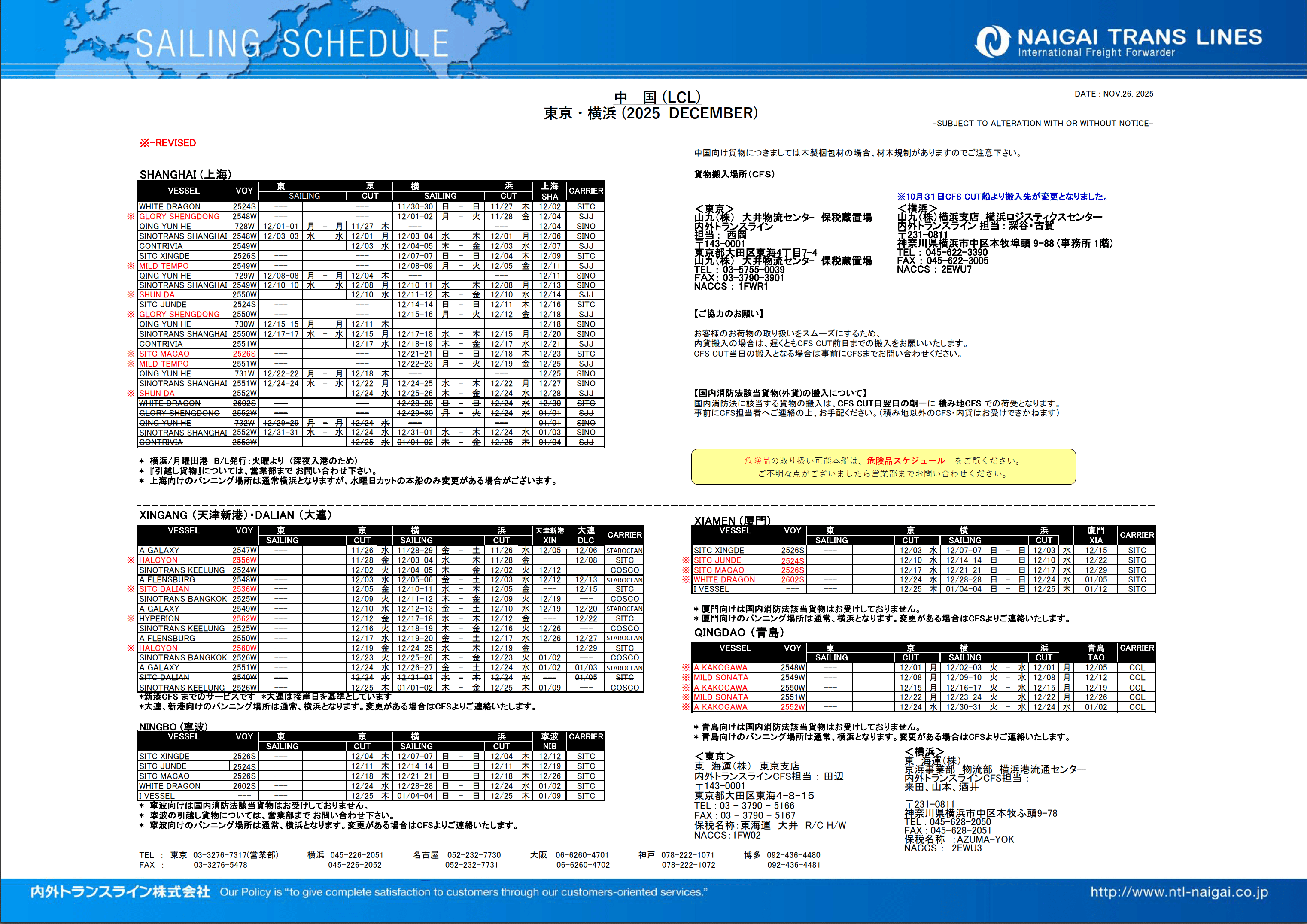 日本発輸出貨物混載サービスをリードする内外トランスラインを利用して弊社の独自の海外ネットワークとJOINTしたDoor to Doorサービスを提供致します。